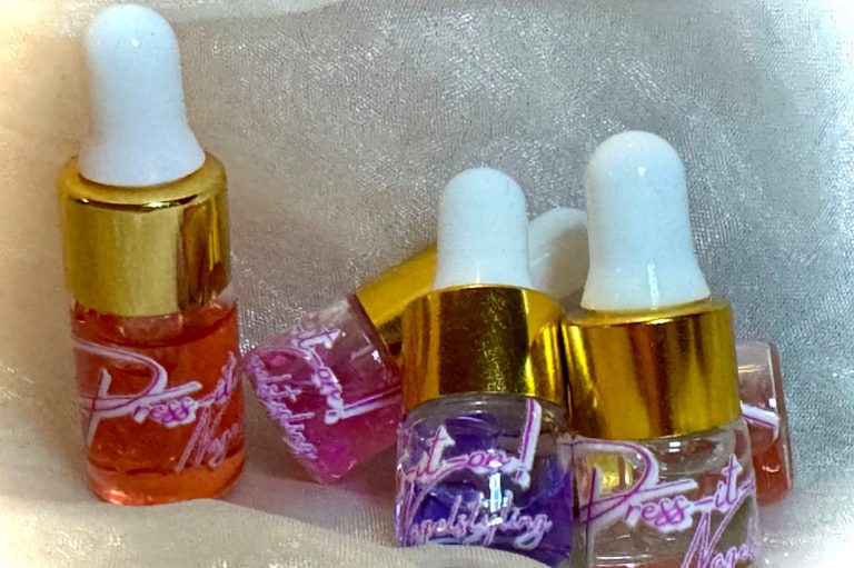 Een verzorgende en geparfumeerde spray voor je handen, extra plak-strips voor de Press-on nagels